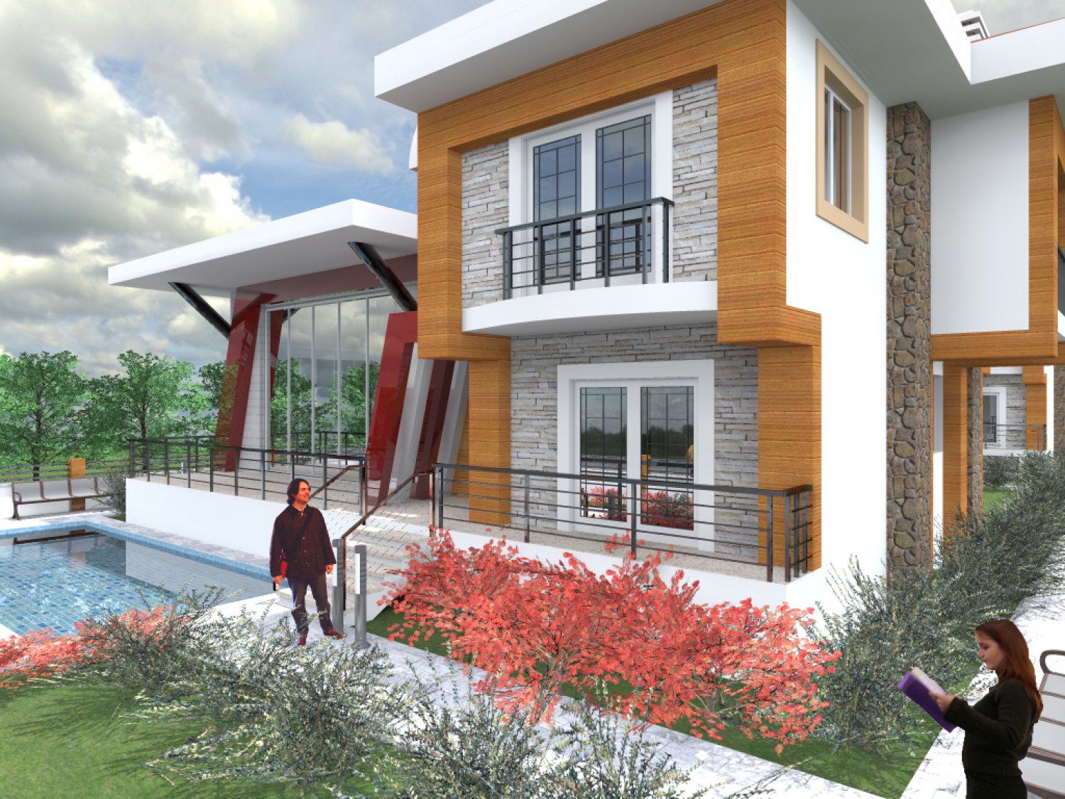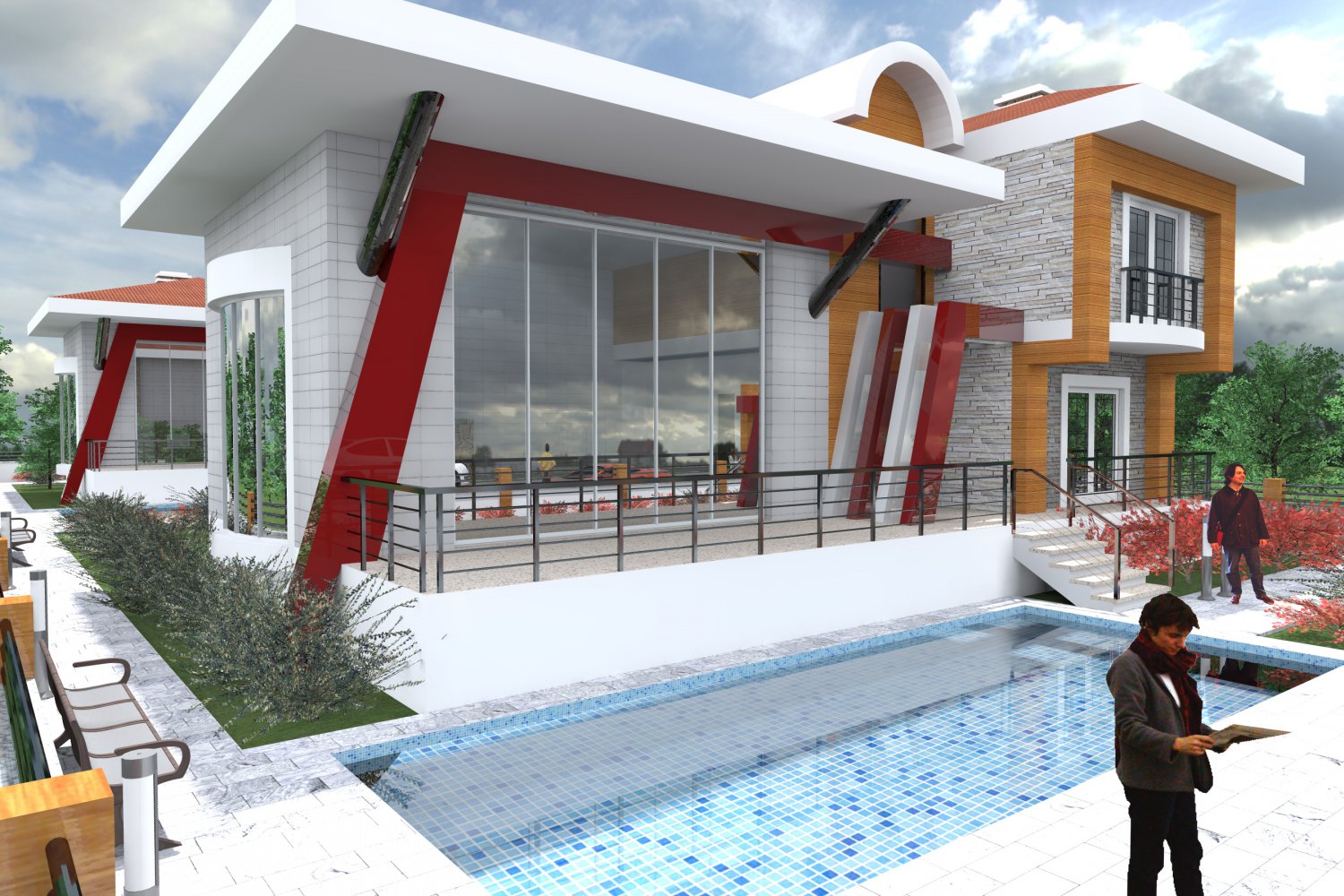 2 adet müstakil villadan oluşan sitede, villalar 3+1, 2'şer banyolu, kendine ait havuzu, içerisinde sahuna ve türk hamamı bulunmaktadır.